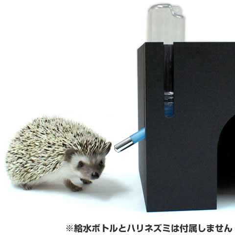 給水ボトル用のホルダー部分が付いたハリネズミ専用のお家です給水ボトル用のホルダー部分が付いたハリネズミ専用のお家です。底板の無いタイプで、床材の上に直接置いていただきます。 ボトルは飲み口部分が正面又は向かって左側になるように設置でき、それぞれ飲み口部分の高さが異なります。 お家が床材に埋もれる場合などは高めの位置の正面で、あまり埋もれない場合は左側の低めの位置でなど、ご利用状況・環境に合わせて使い分けられます。 ホルダーに入るボトルはボトル部分の直径が4.0センチ〜4.2センチのものとなります。 (ボトル直径が合っていても、飲み口部分のパイプが短いなど不向きなボトルもあります。) 出入り口部分のサイズは、幅90×高さ110mm